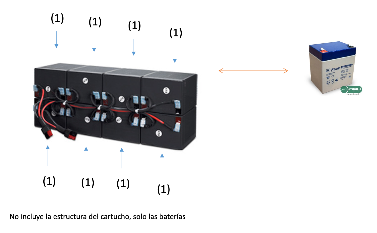 Las baterías de reemplazo que vendemos no son marca APC, son compatibles con las del cartucho original (dimensiones y conectores son los mismos) y están diseñadas para su uso en UPS, de igual forma al cotizar adjuntamos especificaciones técnicas para su evaluación. Solicite cotización formal y especificaciones de las baterías a un ejecutivo de ventas vía soporte o formulario de contacto.